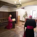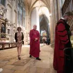 “Once Archbishop Elect Stephen has picked up his Crozier from the High Altar he will move through the Minster to its West End. Here he will knock three times on the inside of the West Door which will then be opened to the world. This reversal of the usual symbolism, is intended to signify the openness of the Church to the world and reflects Archbishop Elect Stephen’s desire to share the good news of Jesus Christ with the communities it serves.”