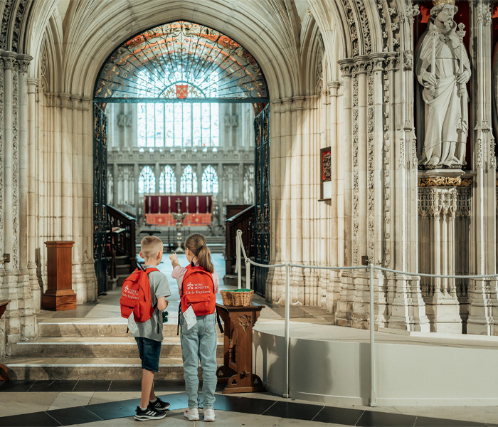 Borrow one of our Little Explorer Backpacks free of charge from the Welcome Desks. Each backpack is packed full of gadgets to help you on your adventure through the medieval Minster.